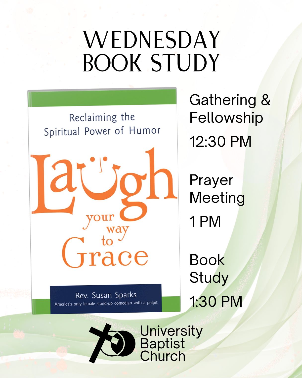 Join us as we continue our book study on "Laugh your way to Grace" by Rev. Susan Sparks.